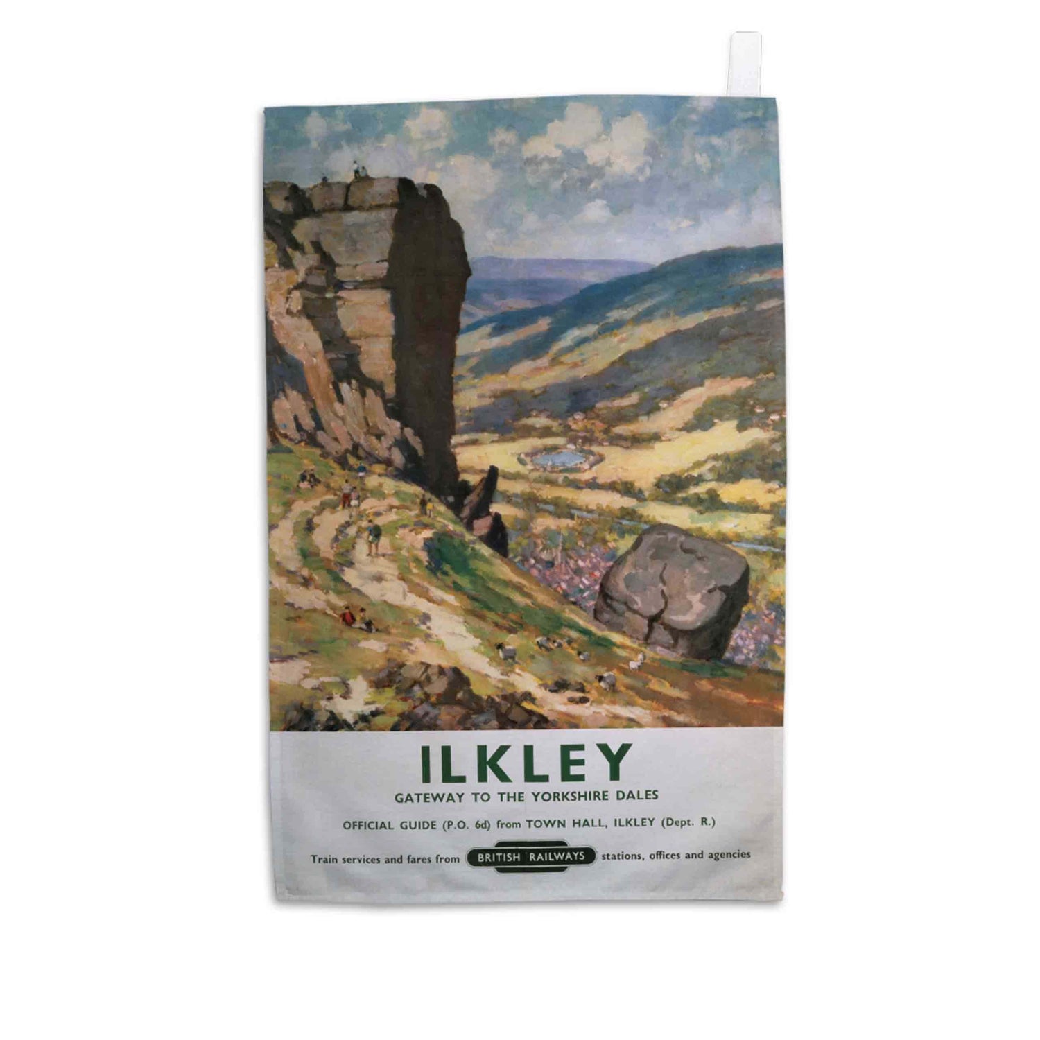 Classic Railway Poster Design on high-quality Tea Towel. This vintage rail design of Ilkley - Gateway to the Yorkshire Dales will look great in any kitchen. All made from 100% cotton and hemmed on all four sides along with a handy hanging loop.