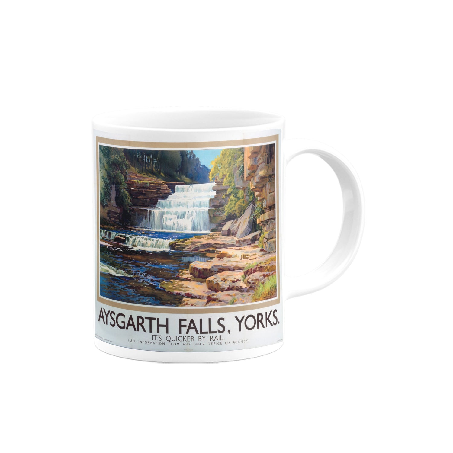 Your favourite Vintage Railway Poster design on a mug. This design of Aysgarth Falls, Yorkshire is perfect for a nice cup of tea or coffee. Great as a gift to any Railway Poster enthusiast.