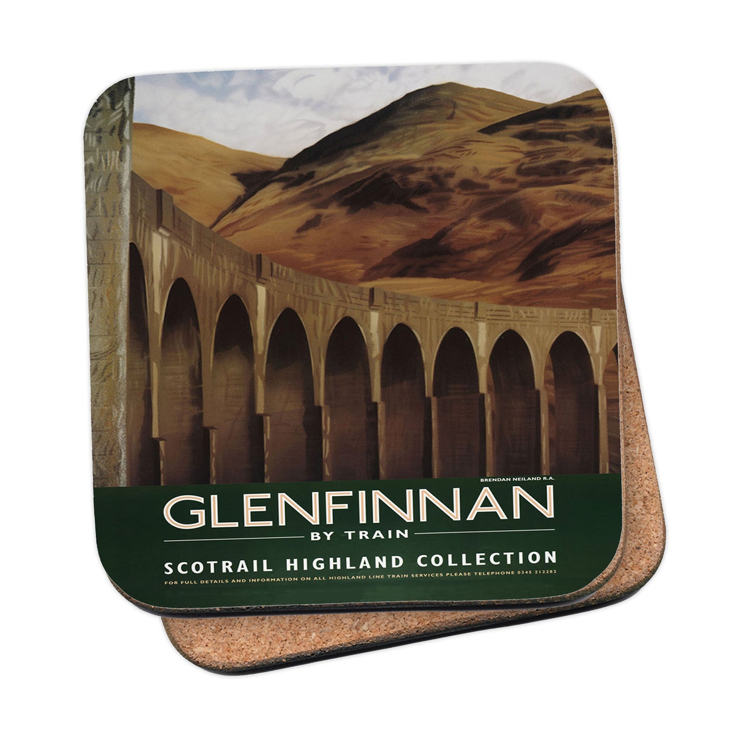 Protect your table surfaces with these durable cork coasters. Beautiful design of Glenfinnan by Train Highland Lines. Perfect for any Railway Posters enthusiast.