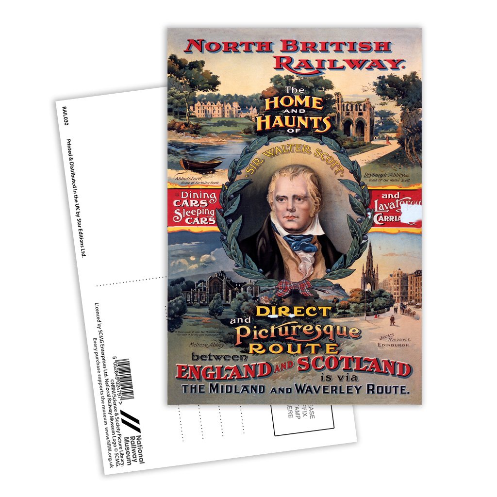 This Vintage Railway Poster postcard pack contains eight postcards. Each printed with the classic poster design of England and Scotland, the Home and Haunts of Sir Walter Scott. All Railway Poster postcards are made from sustainable materials and is FSC accredited.