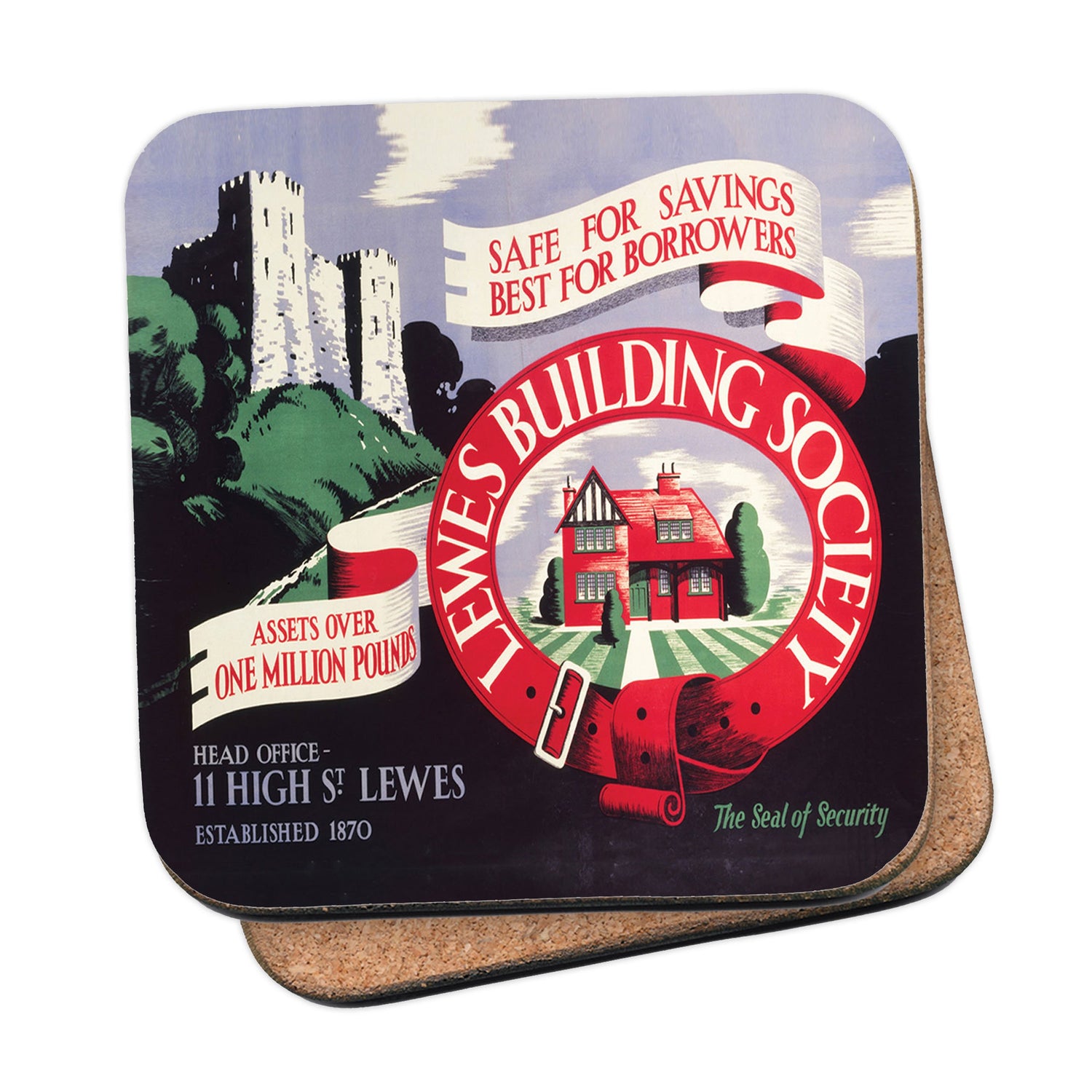 Protect your table surfaces with these durable cork coasters. Beautiful design of Lewes Building Society - Seal of Security. Perfect for any Railway Posters enthusiast.