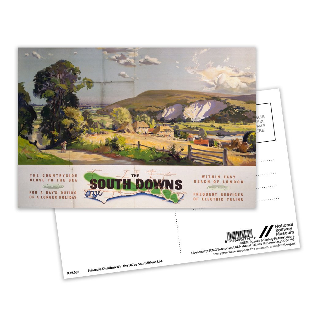 This Vintage Railway Poster postcard pack contains eight postcards. Each printed with the classic poster design of The South Downs - Southern Railway. All Railway Poster postcards are made from sustainable materials and is FSC accredited.