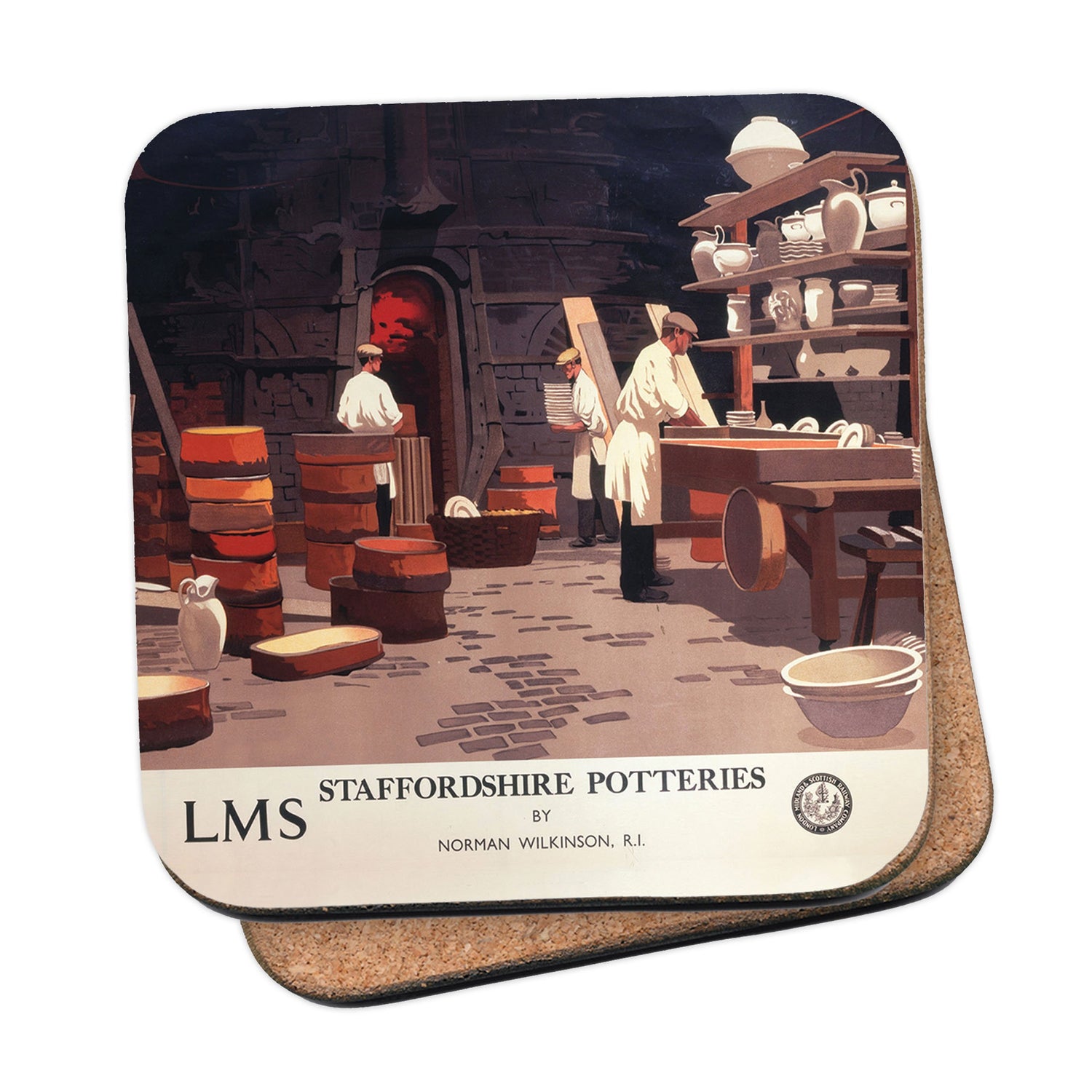 Protect your table surfaces with these durable cork coasters. Beautiful design of Staffordshire Potteries. Perfect for any Railway Posters enthusiast.