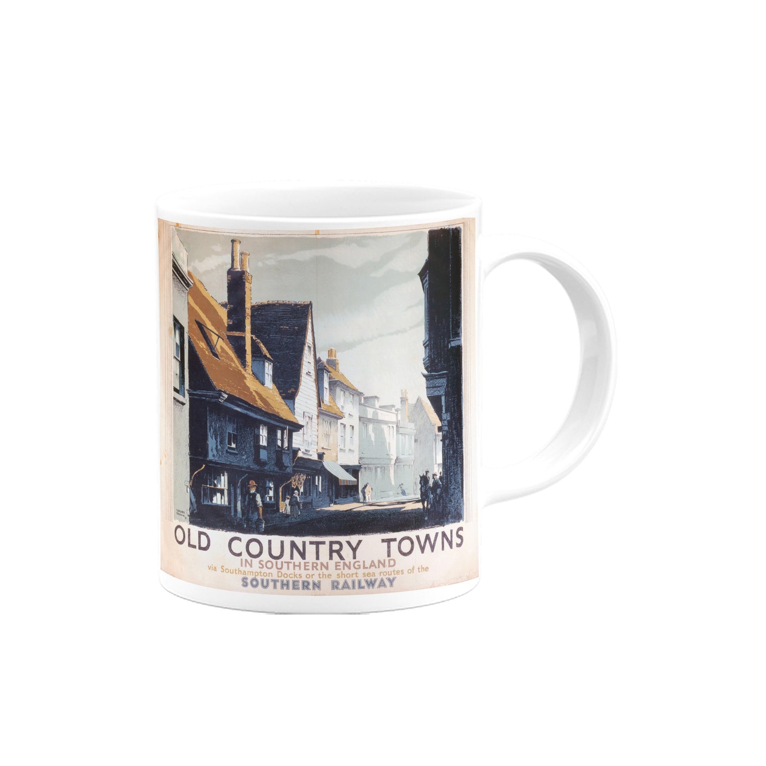 Your favourite Vintage Railway Poster design on a mug. This design of Old County Towns in Southern England is perfect for a nice cup of tea or coffee. Great as a gift to any Railway Poster enthusiast.
