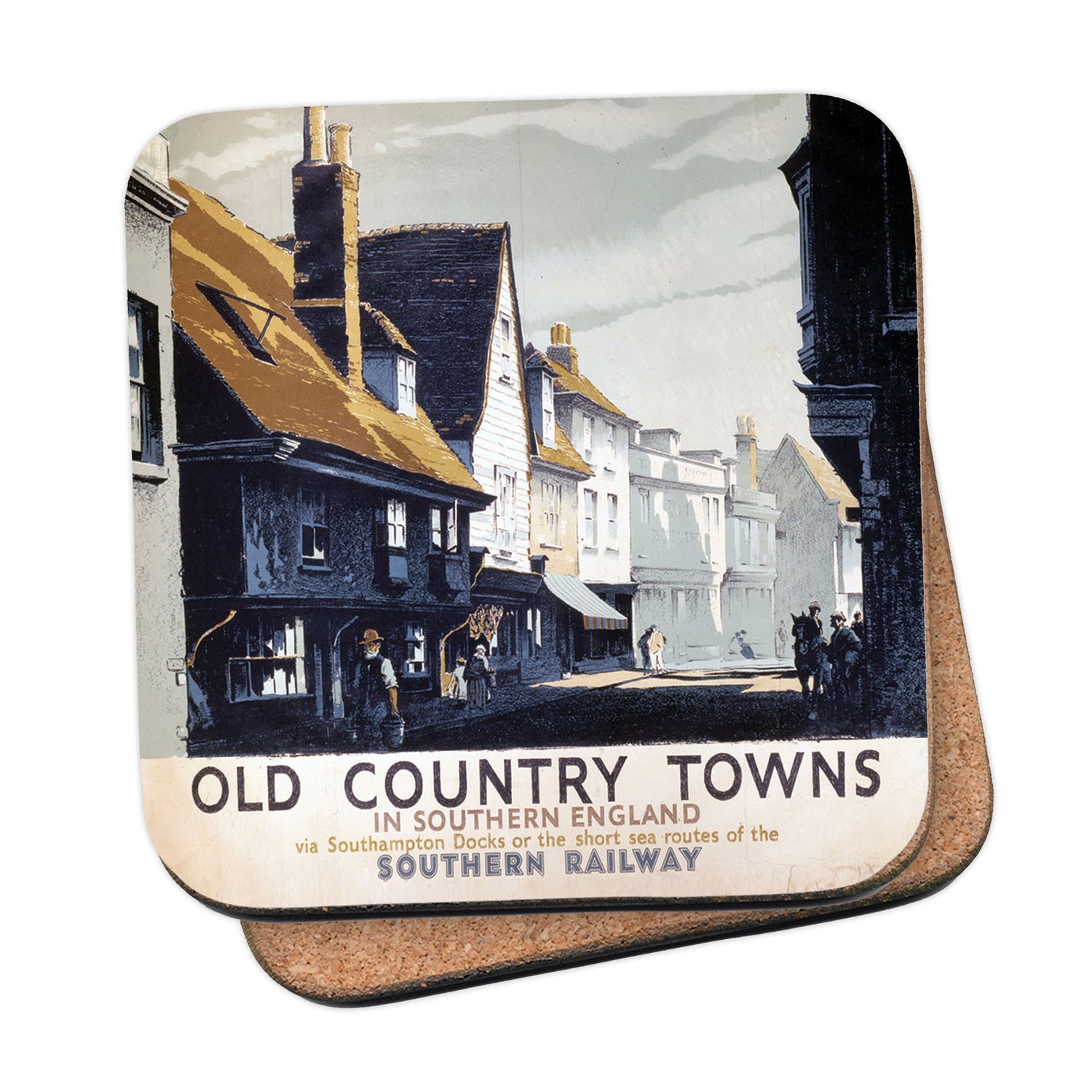 Protect your table surfaces with these durable cork coasters. Beautiful design of Old County Towns in Southern England. Perfect for any Railway Posters enthusiast.