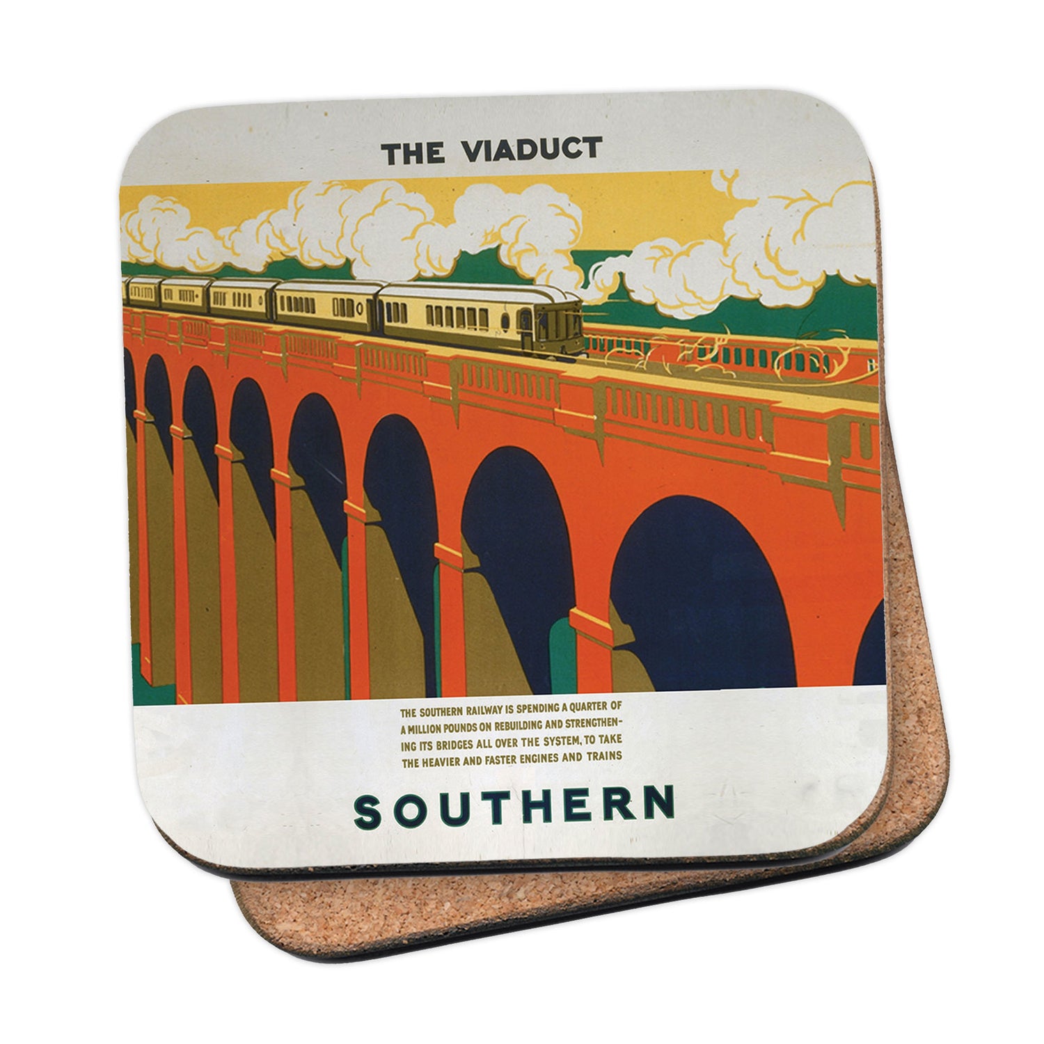 Protect your table surfaces with these durable cork coasters. Beautiful design of The Viaduct - Southern Railway. Perfect for any Railway Posters enthusiast.