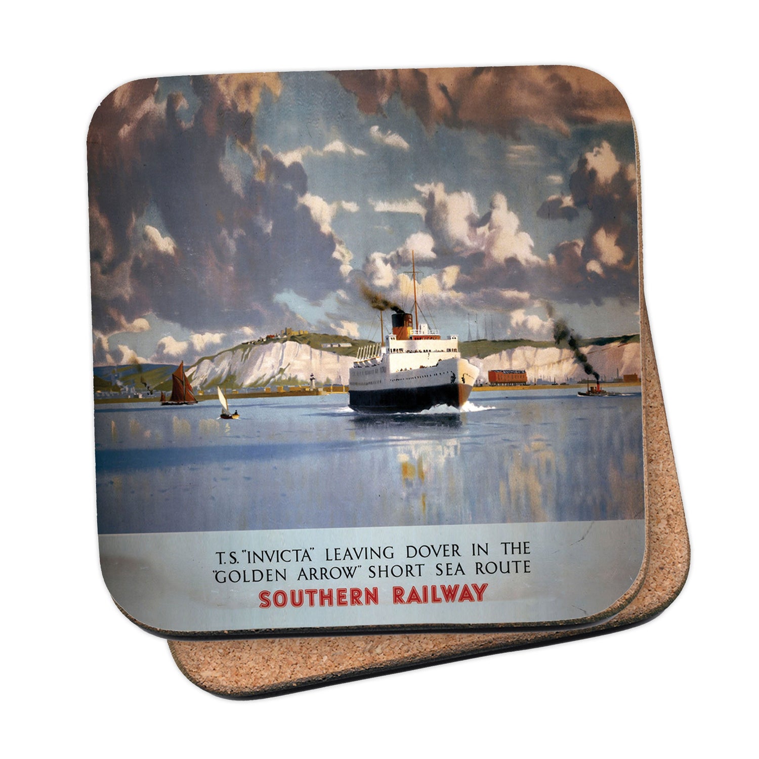 Protect your table surfaces with these durable cork coasters. Beautiful design of T.S. Invicta Dover Southern Railway. Perfect for any Railway Posters enthusiast.