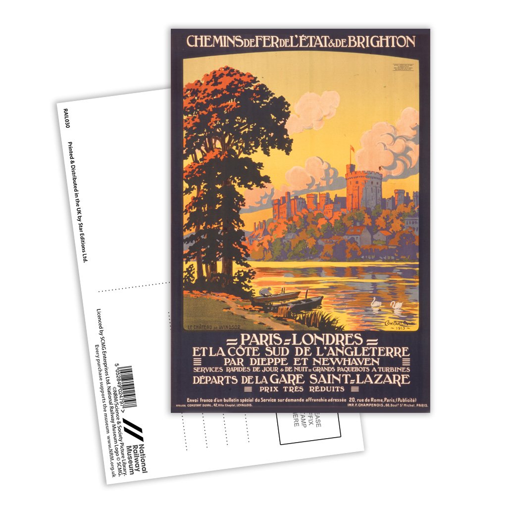 This Vintage Railway Poster postcard pack contains eight postcards. Each printed with the classic poster design of Windsor Castle - Paris - London. All Railway Poster postcards are made from sustainable materials and is FSC accredited.