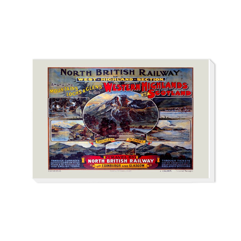 Vintage Railway Poster Canvas Wall Art of Western Highlands of Scotland. Canvases are available in multiple sizes and are all made from eco-friendly FSC accredited materials. All Railway Poster Canvases are made of the best quality materials and are proudly printed in the UK