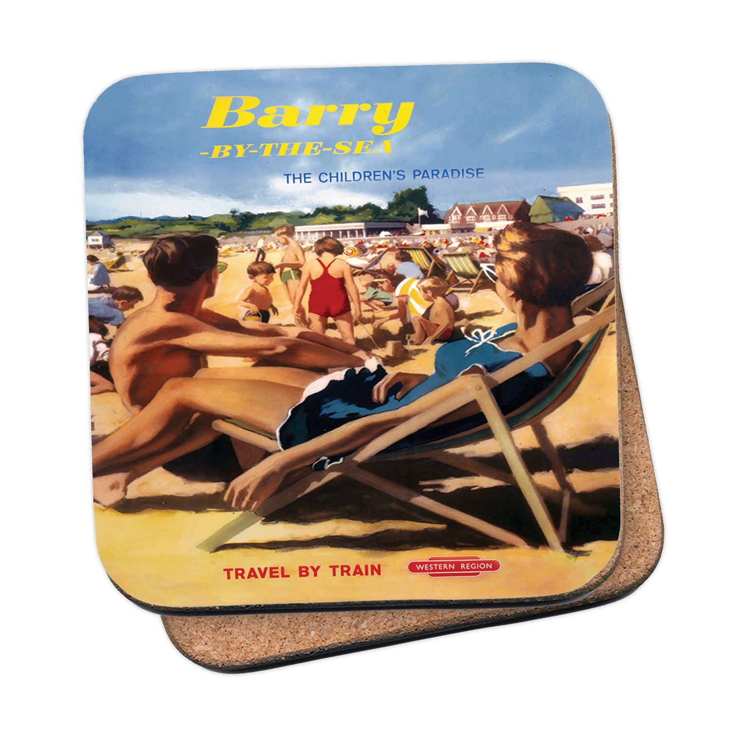 Protect your table surfaces with these durable cork coasters. Beautiful design of Barry-by-the-sea, the Children Paradise. Perfect for any Railway Posters enthusiast.