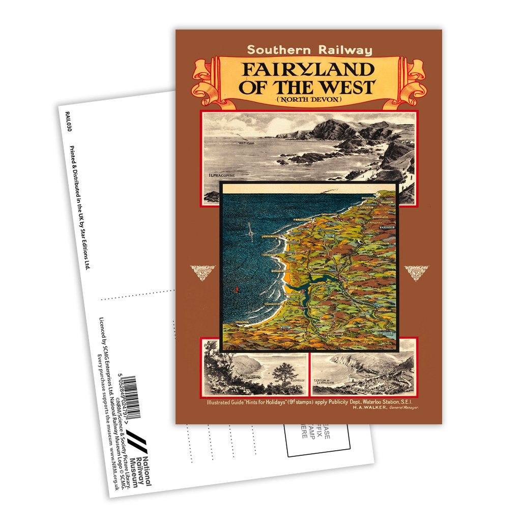 This Vintage Railway Poster postcard pack contains eight postcards. Each printed with the classic poster design of North Devon Fairyland of the West. All Railway Poster postcards are made from sustainable materials and is FSC accredited.