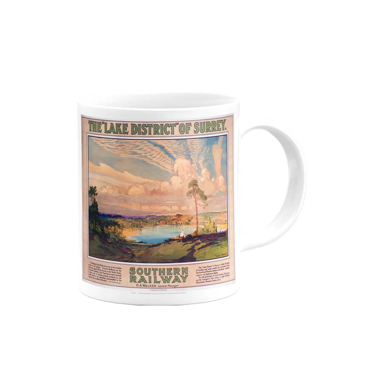Your favourite Vintage Railway Poster design on a mug. This design of The Lake District of Surrey is perfect for a nice cup of tea or coffee. Great as a gift to any Railway Poster enthusiast.