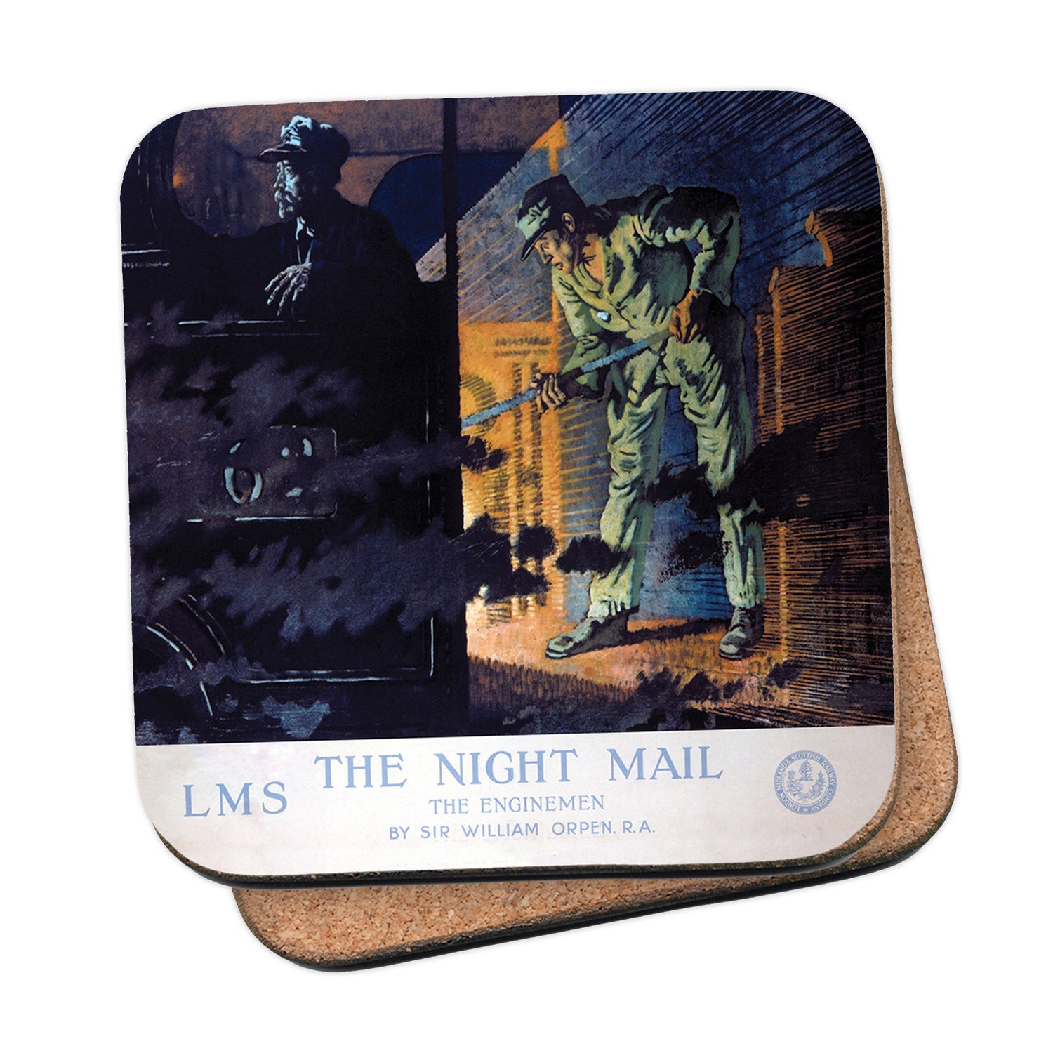 Protect your table surfaces with these durable cork coasters. Beautiful design of The Night Mail - The Enginemen LMS. Perfect for any Railway Posters enthusiast.