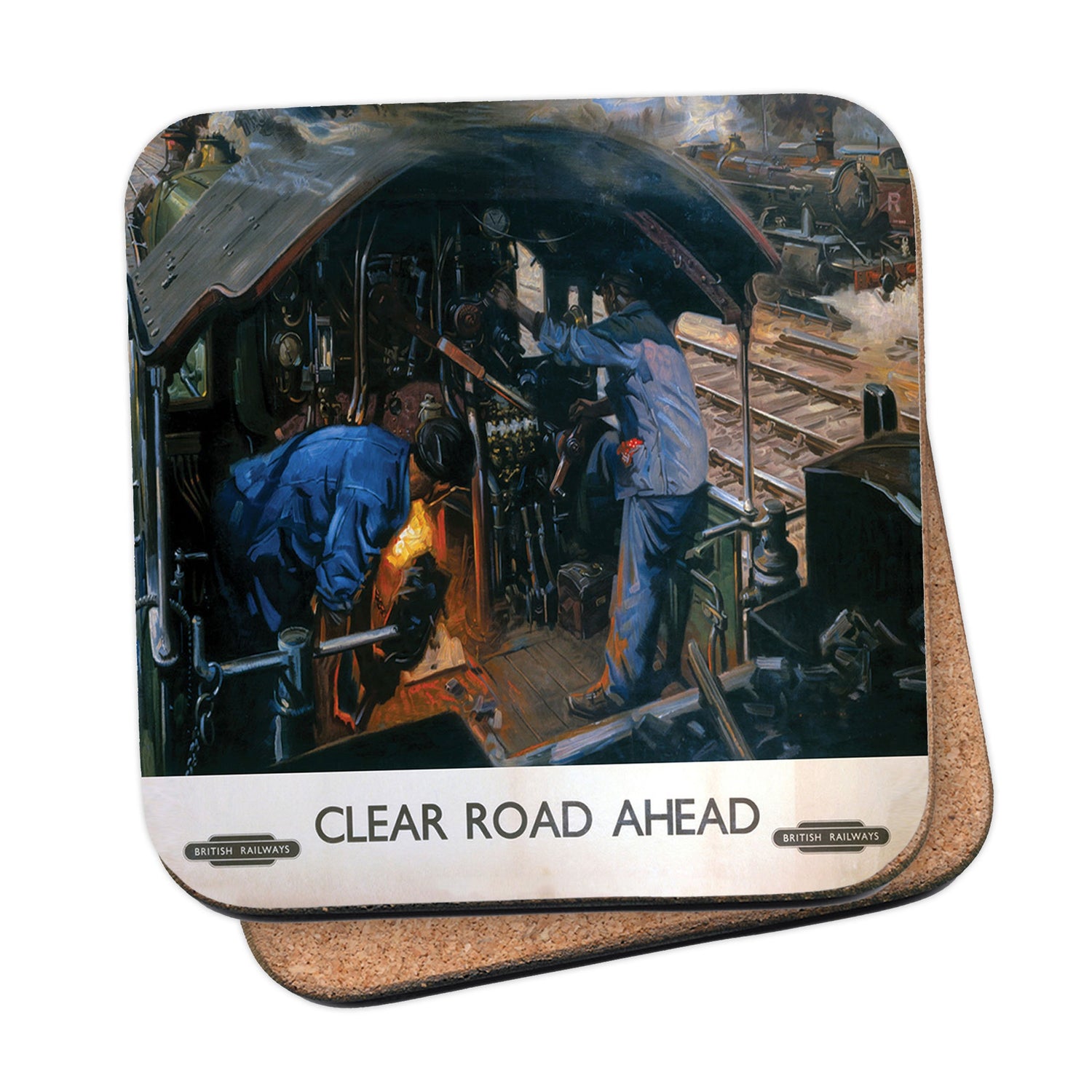 Protect your table surfaces with these durable cork coasters. Beautiful design of Clear Road Ahead British Railways. Perfect for any Railway Posters enthusiast.