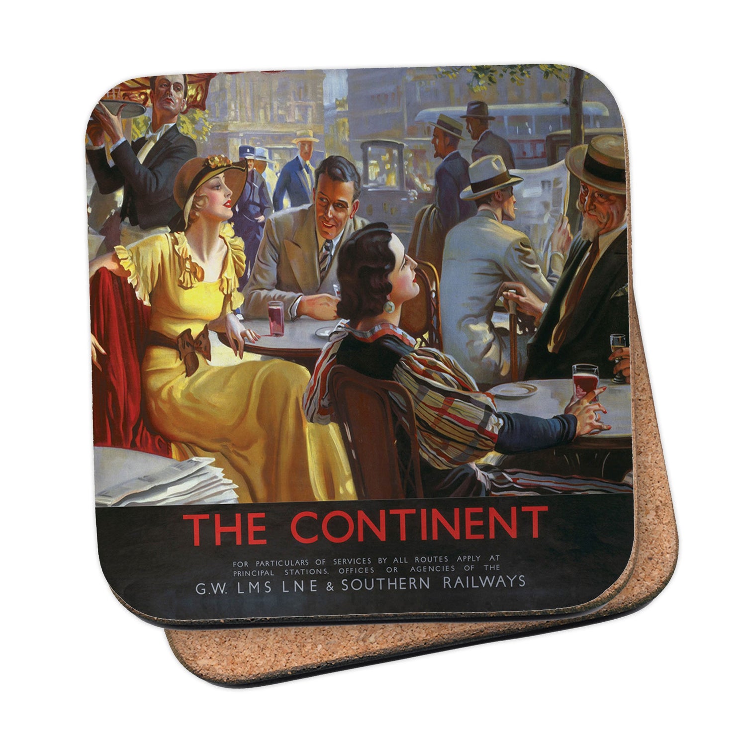 Protect your table surfaces with these durable cork coasters. Beautiful design of The Continent GW, LMS, LNE and Southern Railways. Perfect for any Railway Posters enthusiast.