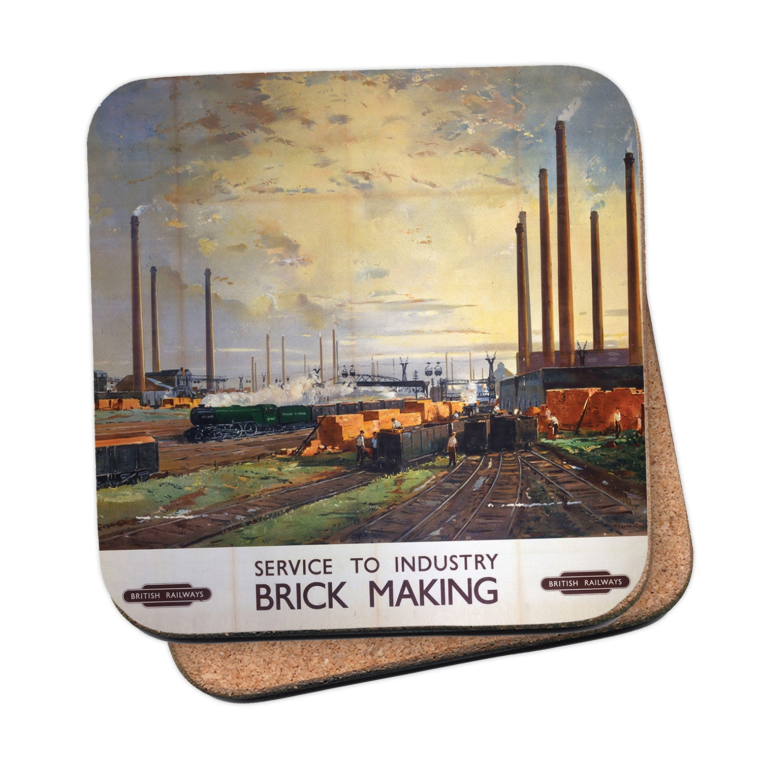 Protect your table surfaces with these durable cork coasters. Beautiful design of Service to Industry - Brick Making. Perfect for any Railway Posters enthusiast.