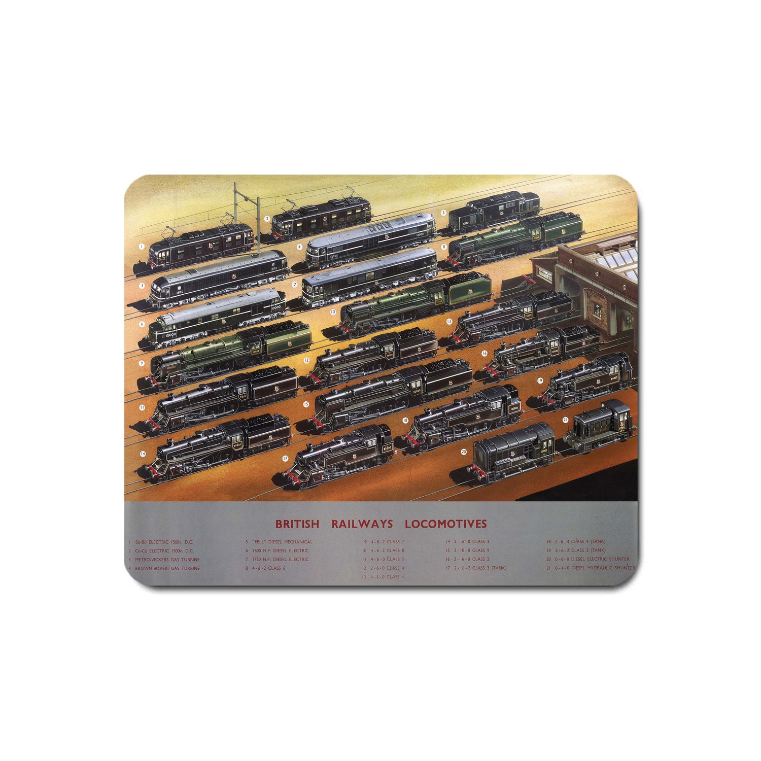 The British railways Locomotives Mouse Mat by Railway Posters is perfect for any desk. The surface is suitable for both laser and optical mice and the non-slip rubber base ensures a secure placement on the desk.