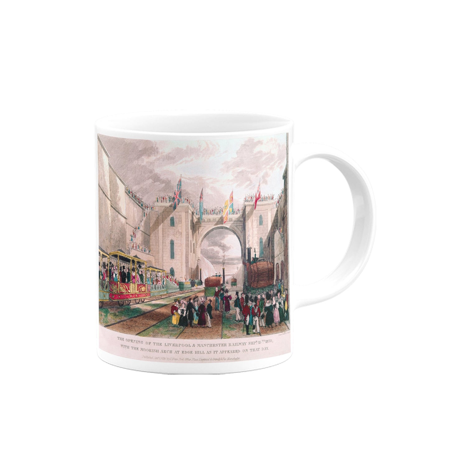 Your favourite Vintage Railway Poster design on a mug. This design of The Opening of the Liverpool-Manchester Railway is perfect for a nice cup of tea or coffee. Great as a gift to any Railway Poster enthusiast.