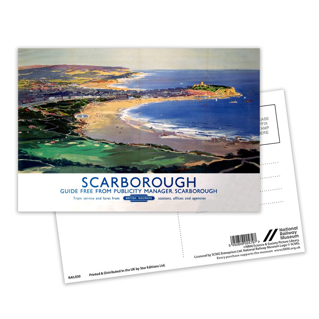 This Vintage Railway Poster postcard pack contains eight postcards. Each printed with the classic poster design of Scarborough British Railways. All Railway Poster postcards are made from sustainable materials and is FSC accredited.
