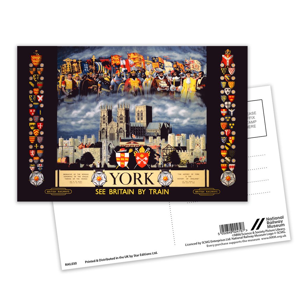 This Vintage Railway Poster postcard pack contains eight postcards. Each printed with the classic poster design of York - See Britain by Train. All Railway Poster postcards are made from sustainable materials and is FSC accredited.
