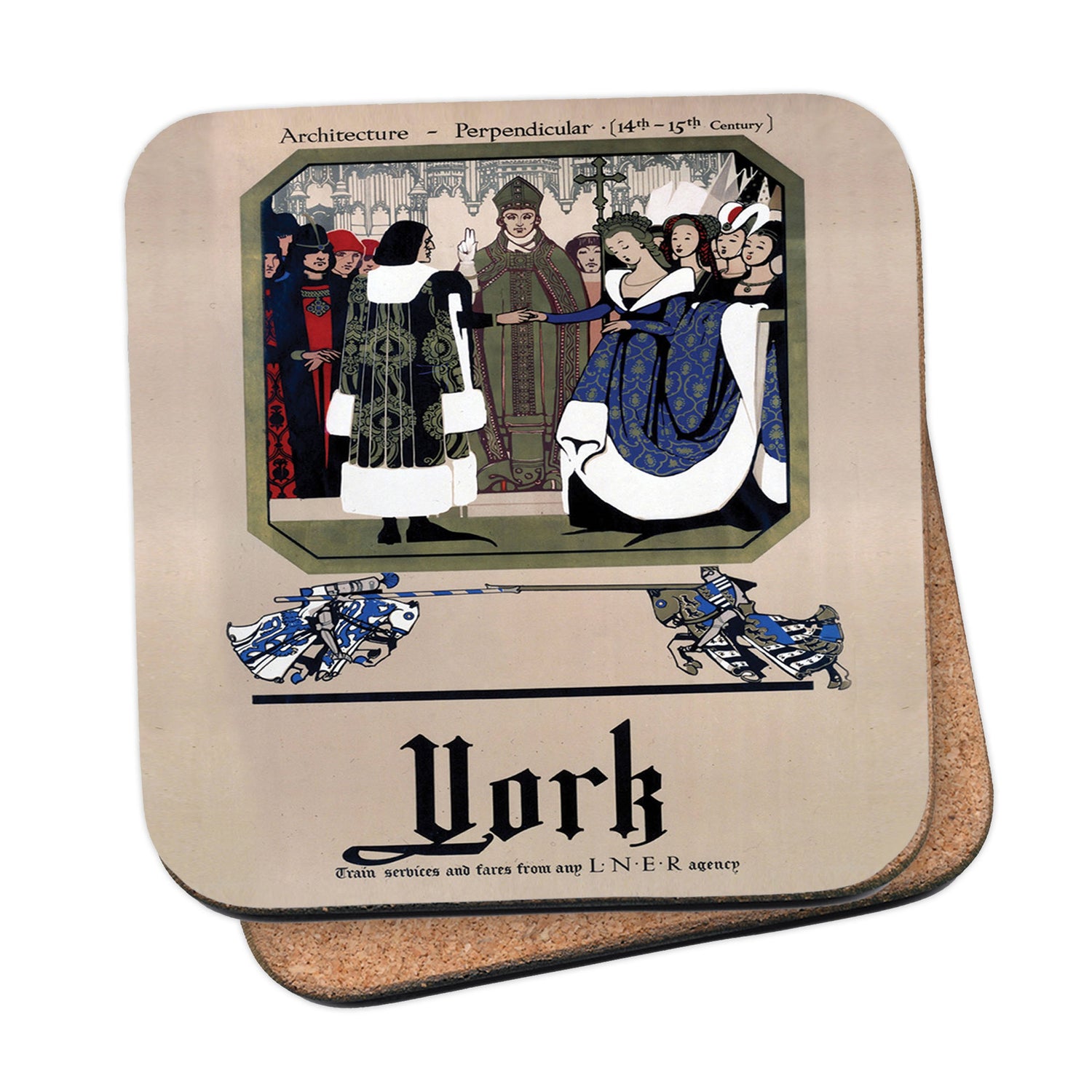Protect your table surfaces with these durable cork coasters. Beautiful design of York, Architecture - Perpendicular. Perfect for any Railway Posters enthusiast.