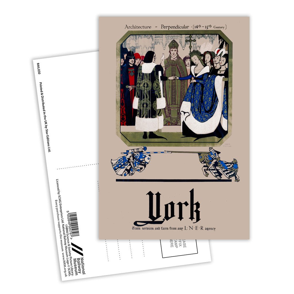This Vintage Railway Poster postcard pack contains eight postcards. Each printed with the classic poster design of York, Architecture - Perpendicular. All Railway Poster postcards are made from sustainable materials and is FSC accredited.