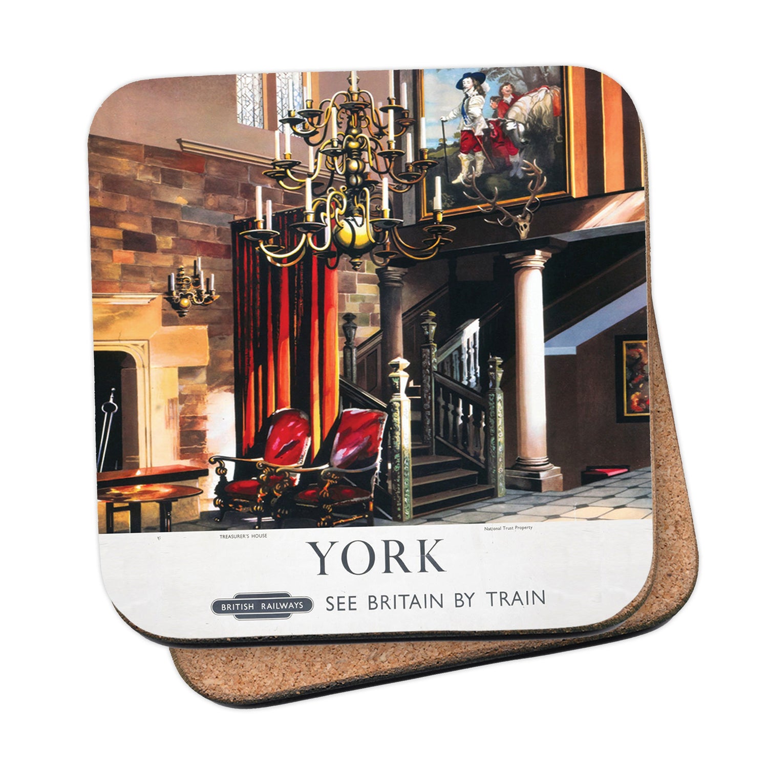 Protect your table surfaces with these durable cork coasters. Beautiful design of York The Treasurers House. Perfect for any Railway Posters enthusiast.