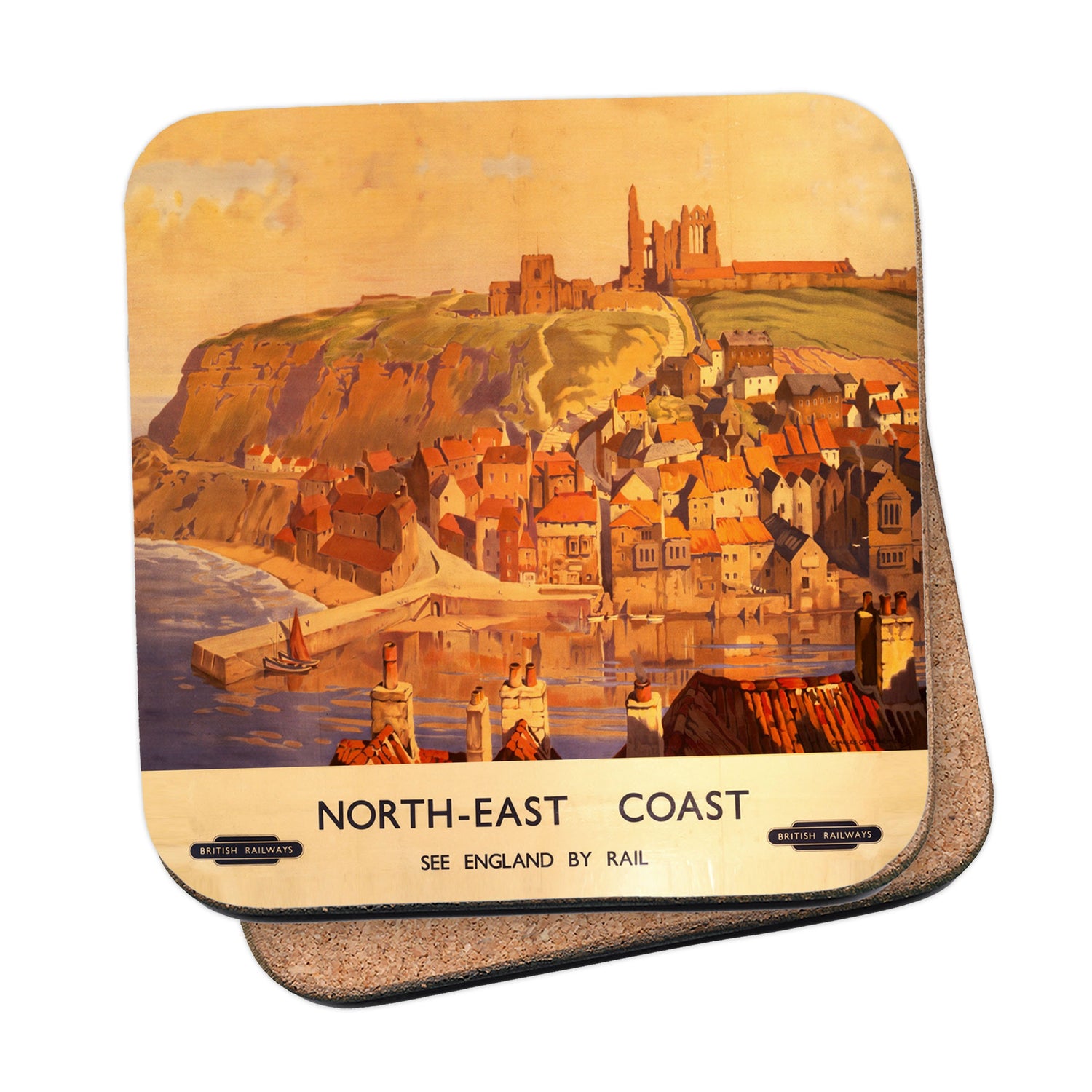 Protect your table surfaces with these durable cork coasters. Beautiful design of North East Coast, Whitby. Perfect for any Railway Posters enthusiast.