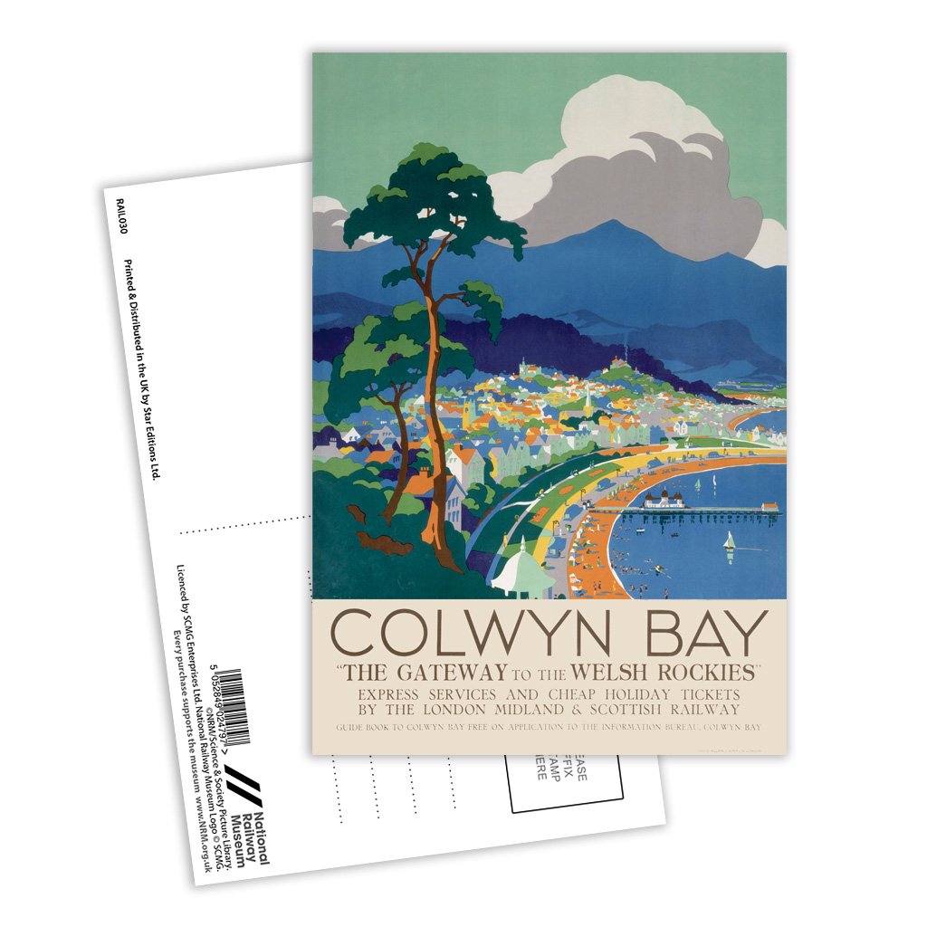 This Vintage Railway Poster postcard pack contains eight postcards. Each printed with the classic poster design of Colwyn Bay, Gateway to the Welsh Rockies. All Railway Poster postcards are made from sustainable materials and is FSC accredited.