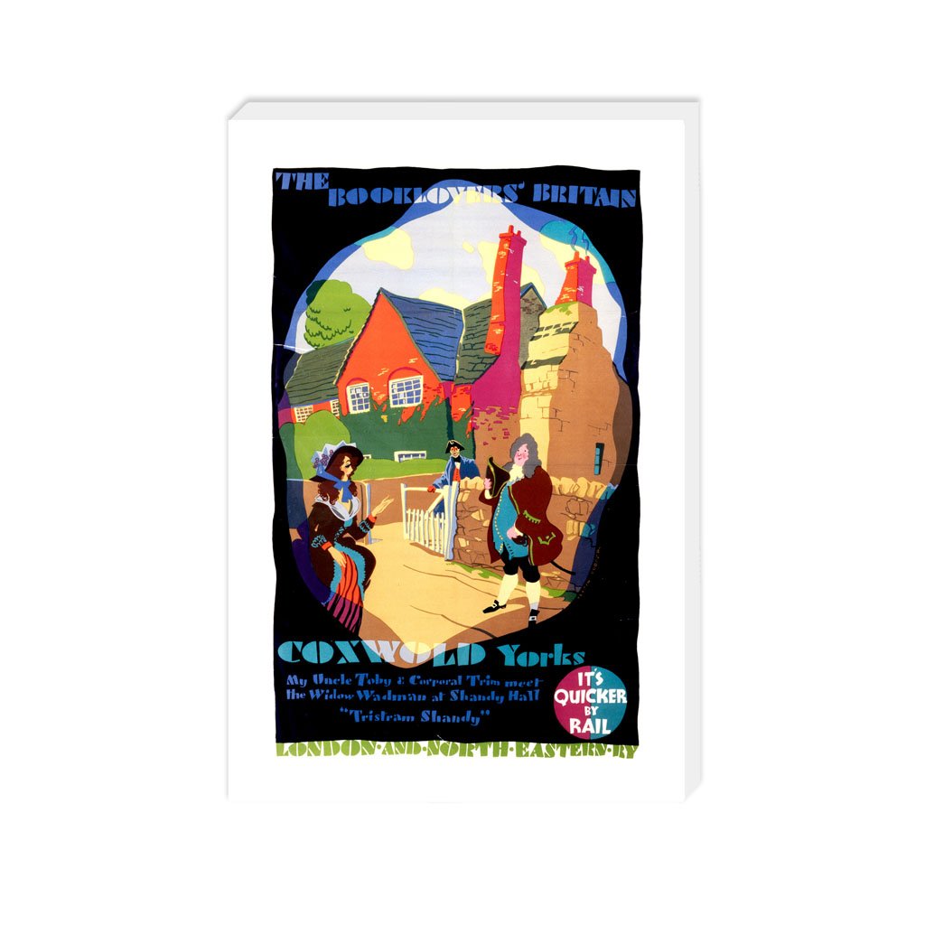 Vintage Railway Poster Canvas Wall Art of Booklovers' Britain - Coxwold Yorkshire. Canvases are available in multiple sizes and are all made from eco-friendly FSC accredited materials. All Railway Poster Canvases are made of the best quality materials and are proudly printed in the UK
