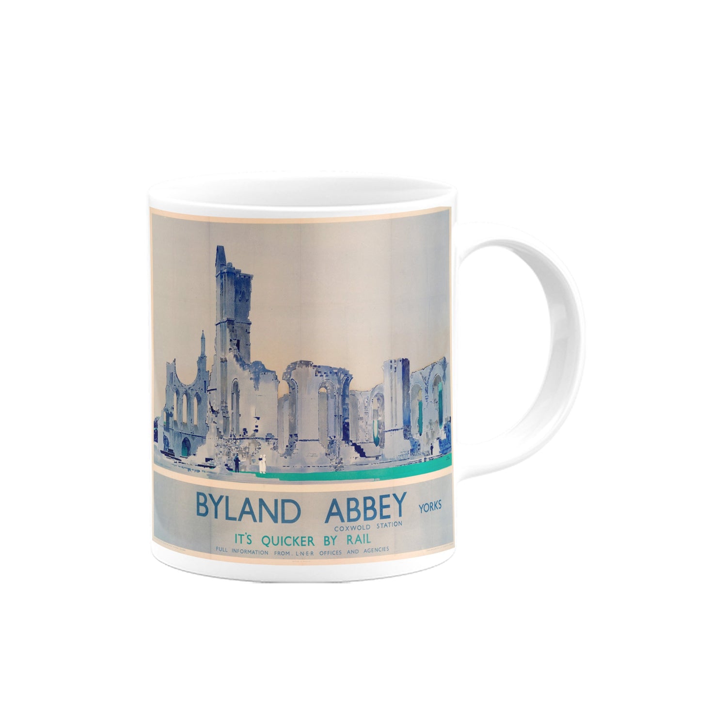 Your favourite Vintage Railway Poster design on a mug. This design of Byland Abbey Coxwold Station Yorkshire is perfect for a nice cup of tea or coffee. Great as a gift to any Railway Poster enthusiast.