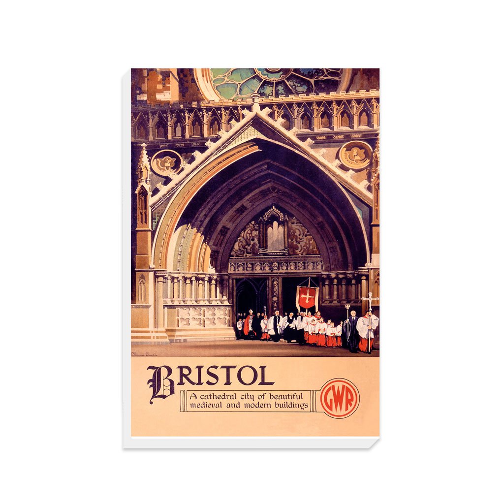 Vintage Railway Poster Canvas Wall Art of Bristol Cathedral. Canvases are available in multiple sizes and are all made from eco-friendly FSC accredited materials. All Railway Poster Canvases are made of the best quality materials and are proudly printed in the UK