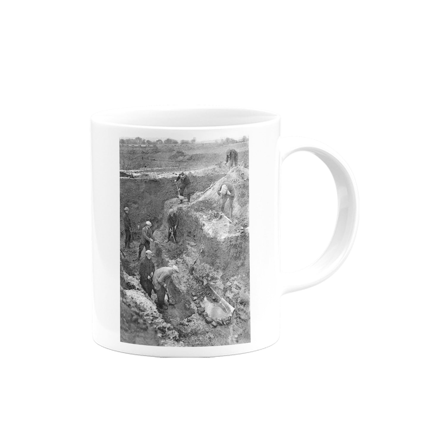 Your favourite Vintage Railway Poster design on a mug. This design of Black and White Construction Site is perfect for a nice cup of tea or coffee. Great as a gift to any Railway Poster enthusiast.