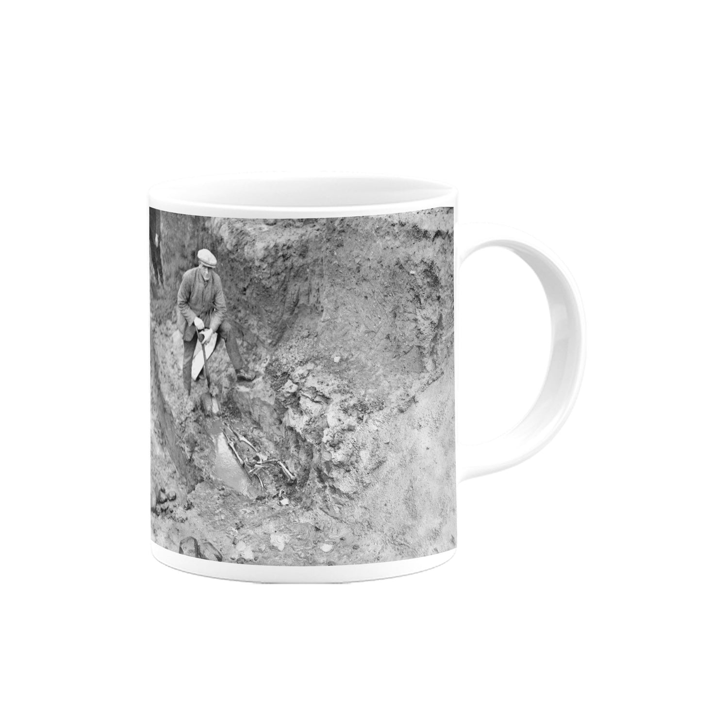 Your favourite Vintage Railway Poster design on a mug. This design of Black and White Excavation Site is perfect for a nice cup of tea or coffee. Great as a gift to any Railway Poster enthusiast.