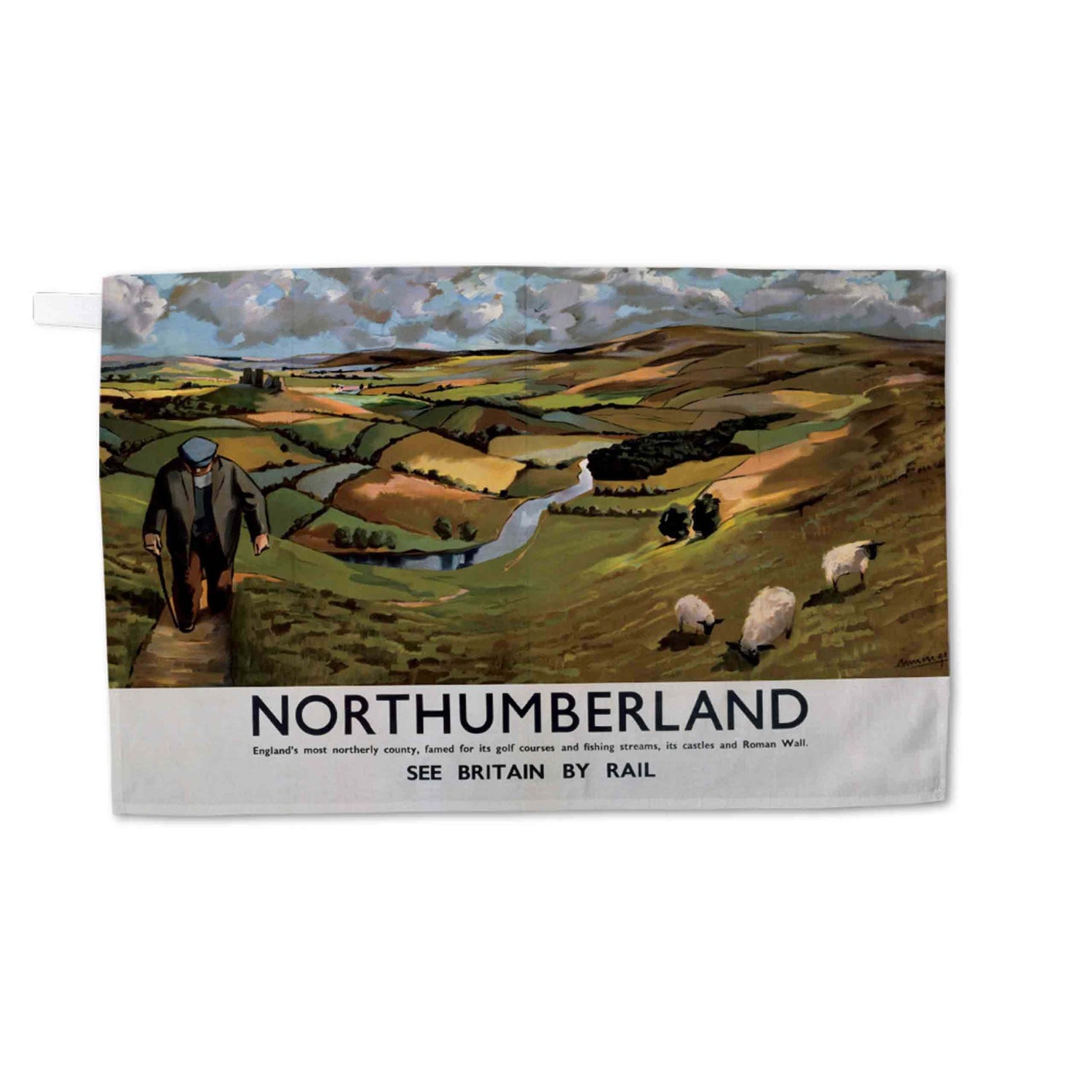 Classic Railway Poster Design on high-quality Tea Towel. This vintage rail design of Northumberland, England's most northerly county will look great in any kitchen. All made from 100% cotton and hemmed on all four sides along with a handy hanging loop.