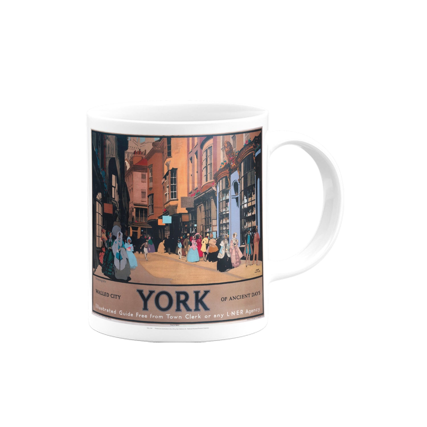 Your favourite Vintage Railway Poster design on a mug. This design of York, Walled City of Ancient Days is perfect for a nice cup of tea or coffee. Great as a gift to any Railway Poster enthusiast.