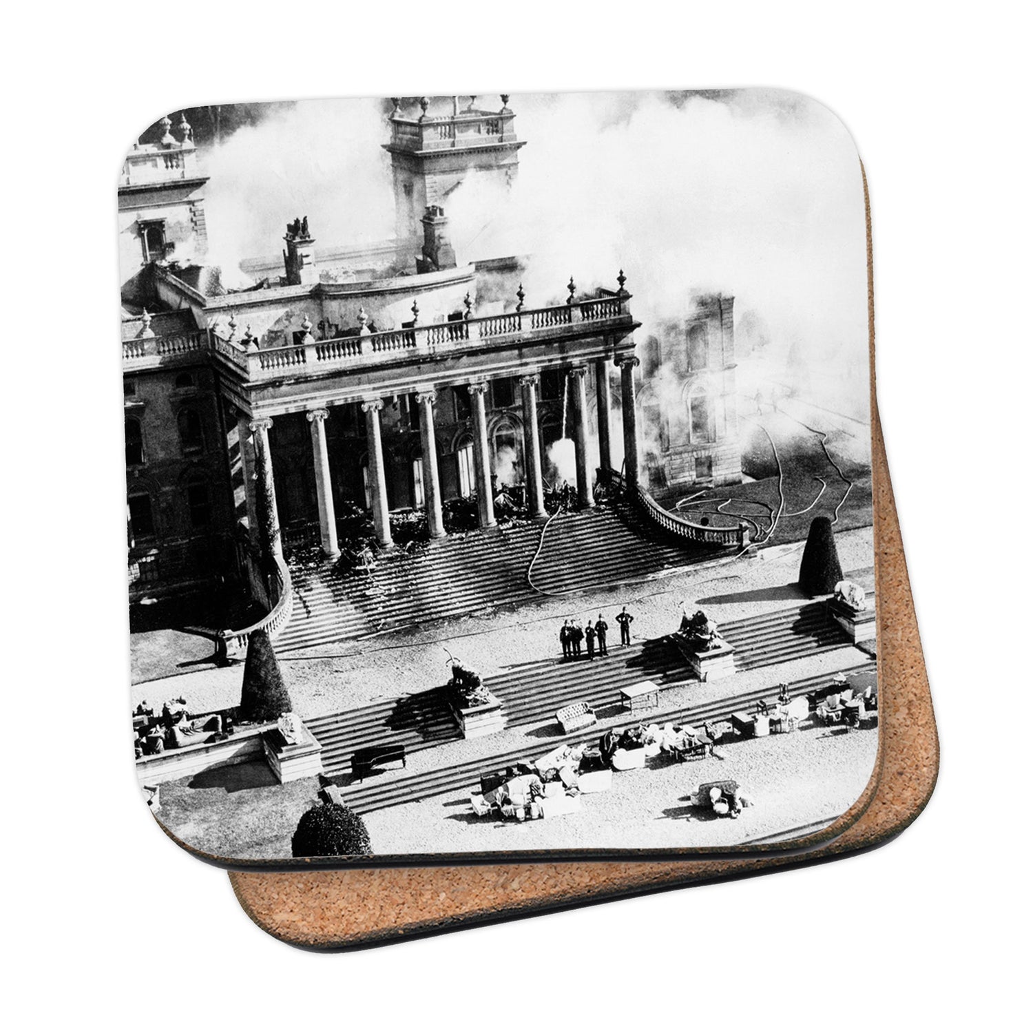 Building on fire, Black and White Coaster