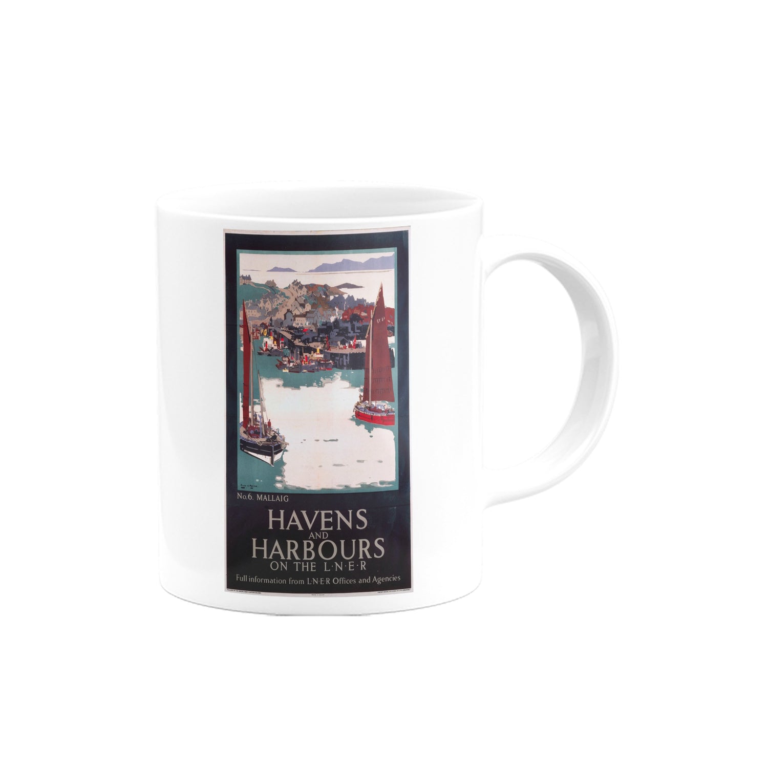 Your favourite Vintage Railway Poster design on a mug. This design of Havens and Harbours No 6 Mallaig is perfect for a nice cup of tea or coffee. Great as a gift to any Railway Poster enthusiast.