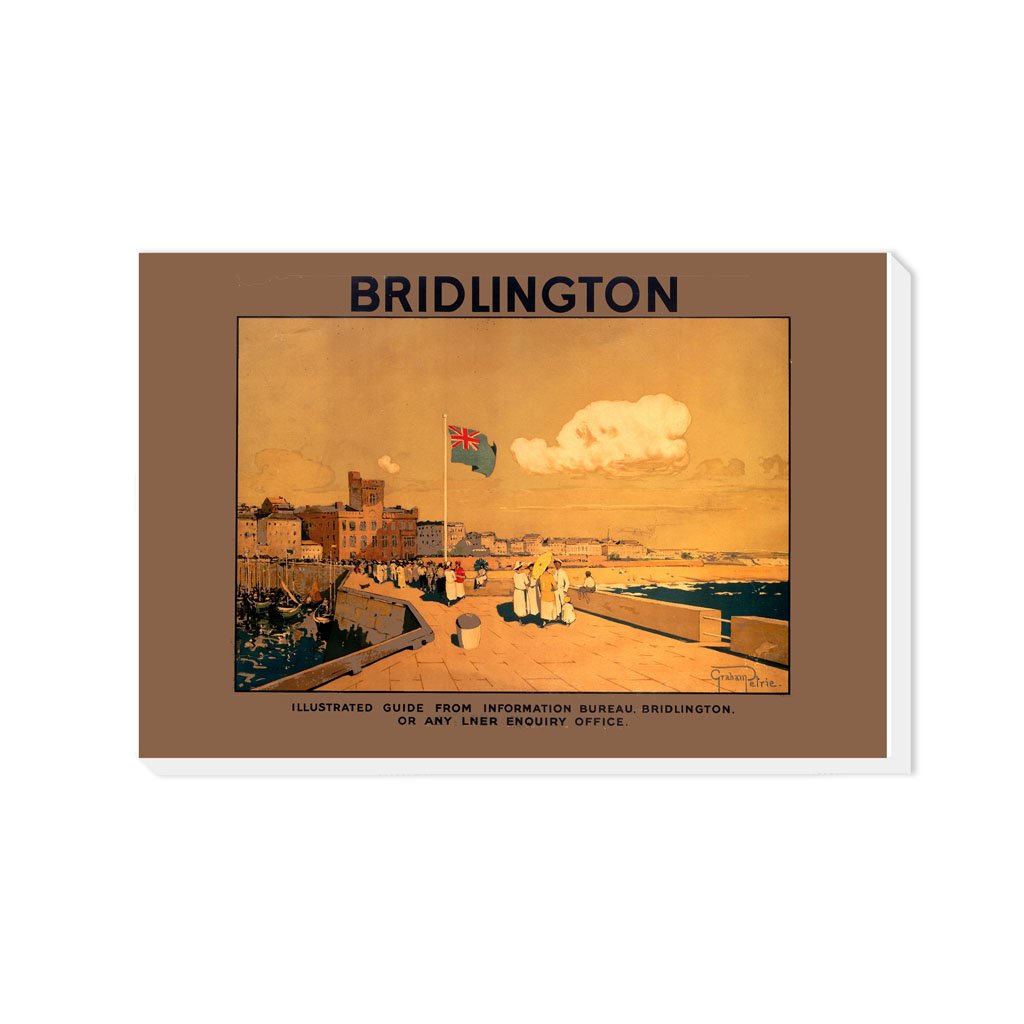 Vintage Railway Poster Canvas Wall Art of Bridlington Flag - It's Quicker By Rail. Canvases are available in multiple sizes and are all made from eco-friendly FSC accredited materials. All Railway Poster Canvases are made of the best quality materials and are proudly printed in the UK