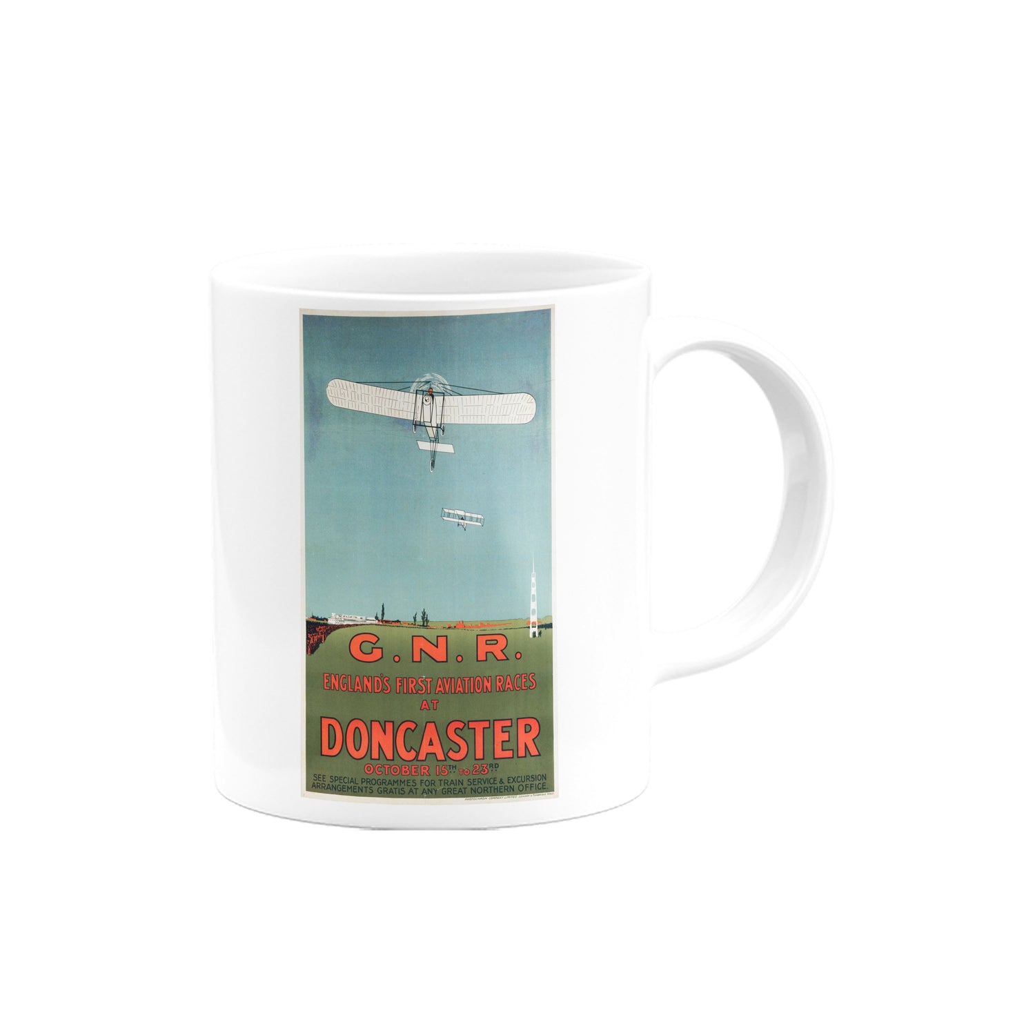 Your favourite Vintage Railway Poster design on a mug. This design of GNR Aviation Races at Doncaster is perfect for a nice cup of tea or coffee. Great as a gift to any Railway Poster enthusiast.