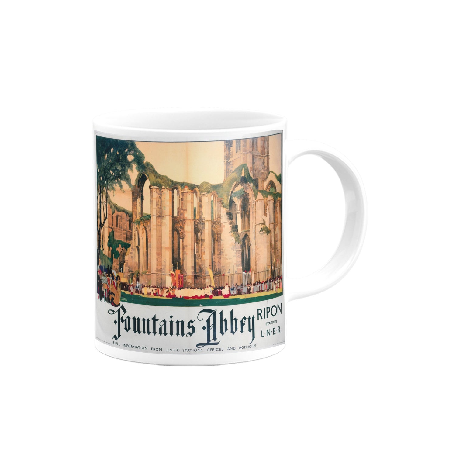 Your favourite Vintage Railway Poster design on a mug. This design of Fountains Abbey, Yorkshire, Ripon is perfect for a nice cup of tea or coffee. Great as a gift to any Railway Poster enthusiast.