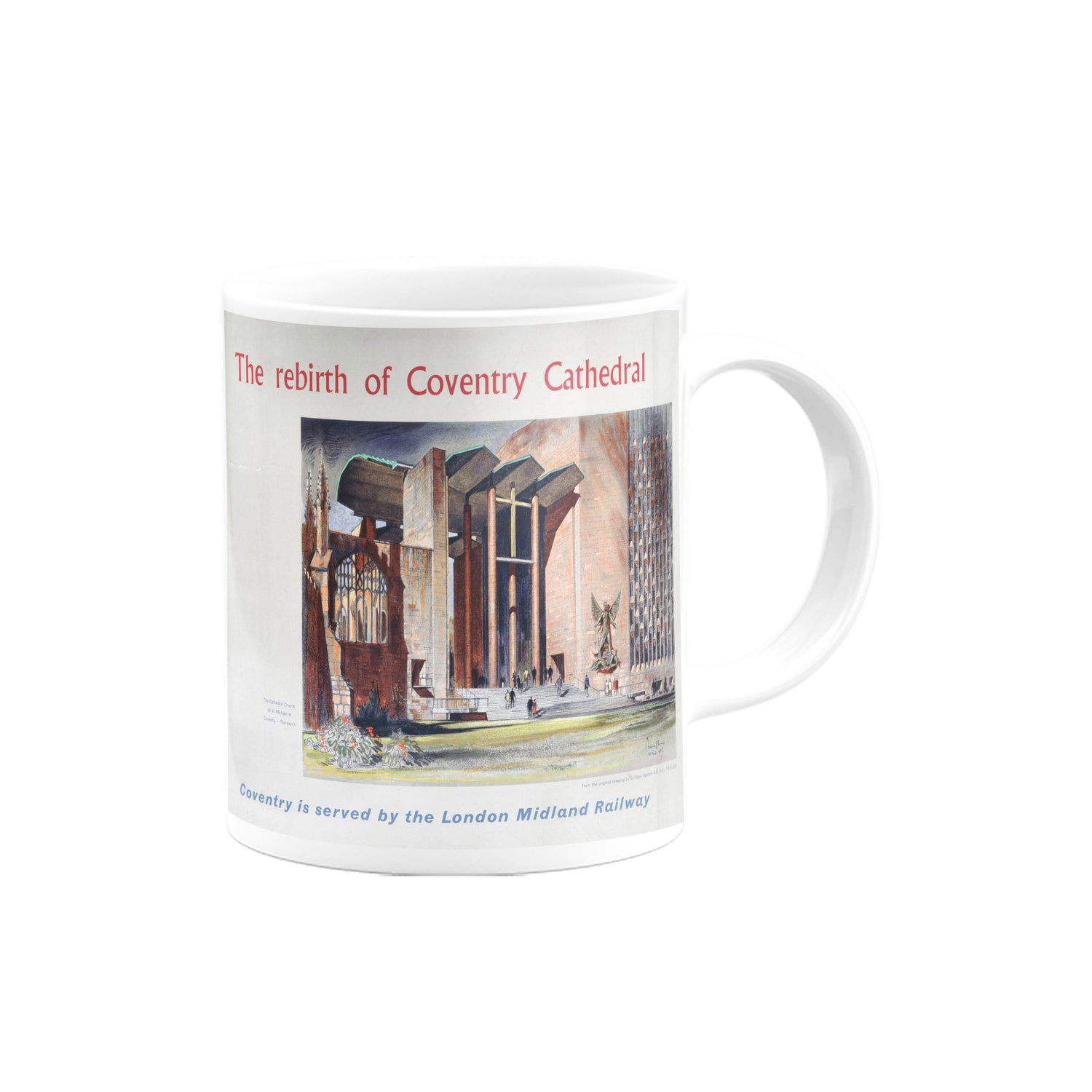 Your favourite Vintage Railway Poster design on a mug. This design of The Rebirth of Coventry Cathedral is perfect for a nice cup of tea or coffee. Great as a gift to any Railway Poster enthusiast.