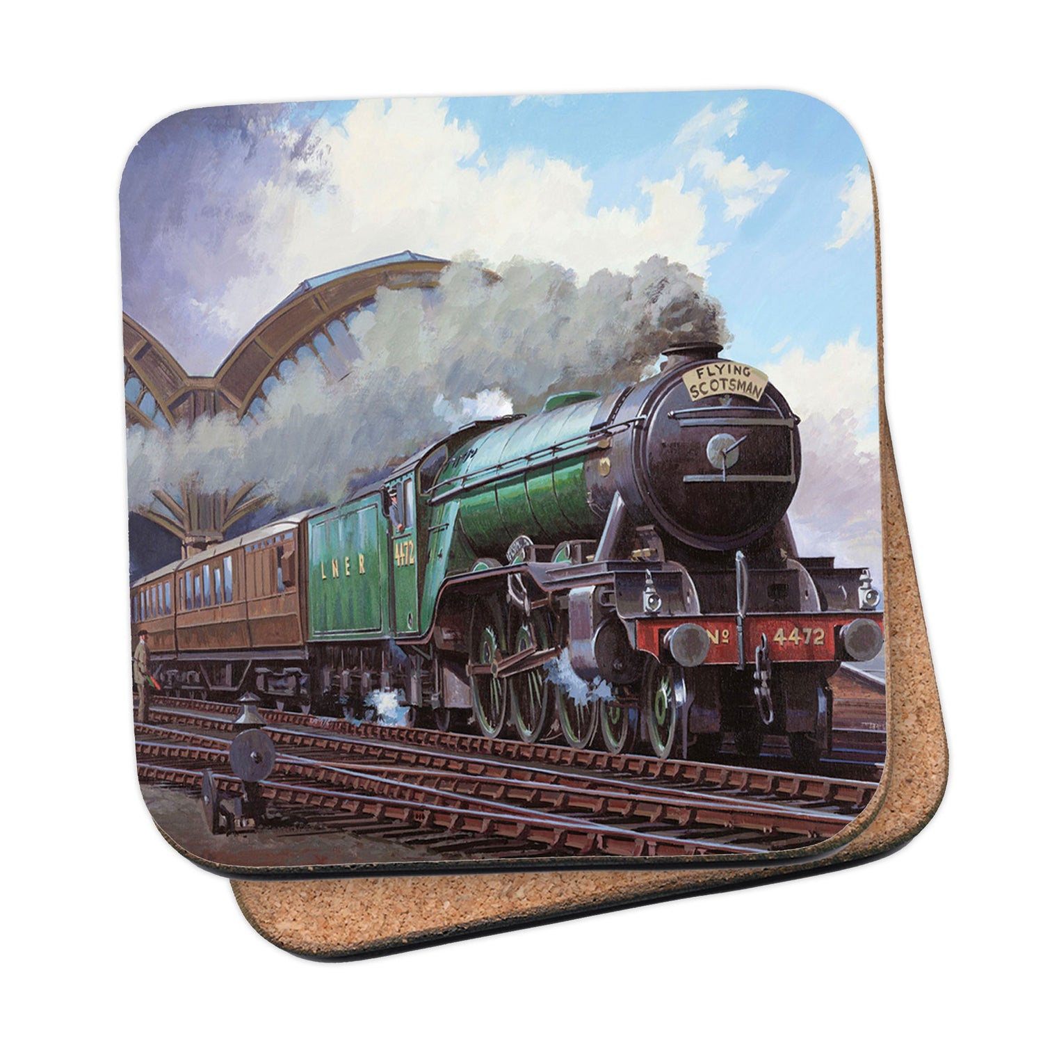 Protect your table surfaces with these durable cork coasters. Beautiful design of The Flying Scotsman. Perfect for any Railway Posters enthusiast.