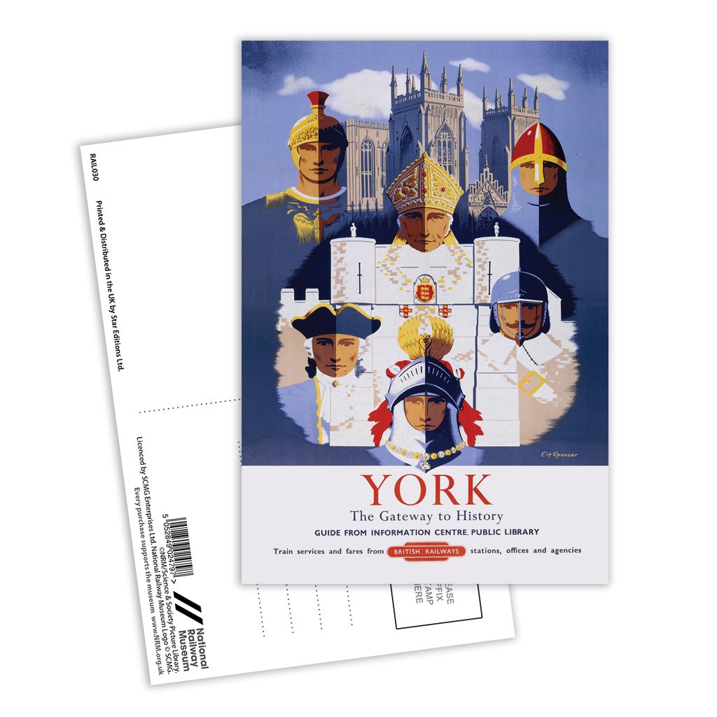 This Vintage Railway Poster postcard pack contains eight postcards. Each printed with the classic poster design of York, the Gateway to History. All Railway Poster postcards are made from sustainable materials and is FSC accredited.