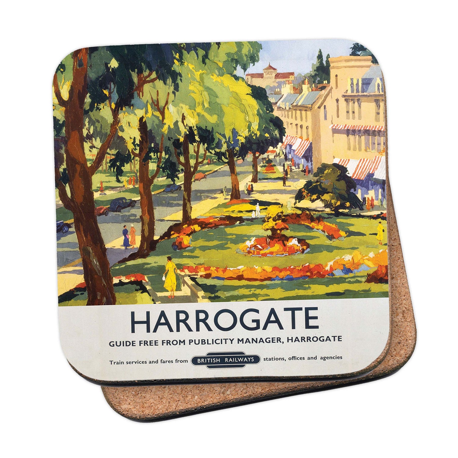 Protect your table surfaces with these durable cork coasters. Beautiful design of Harrogate. Perfect for any Railway Posters enthusiast.