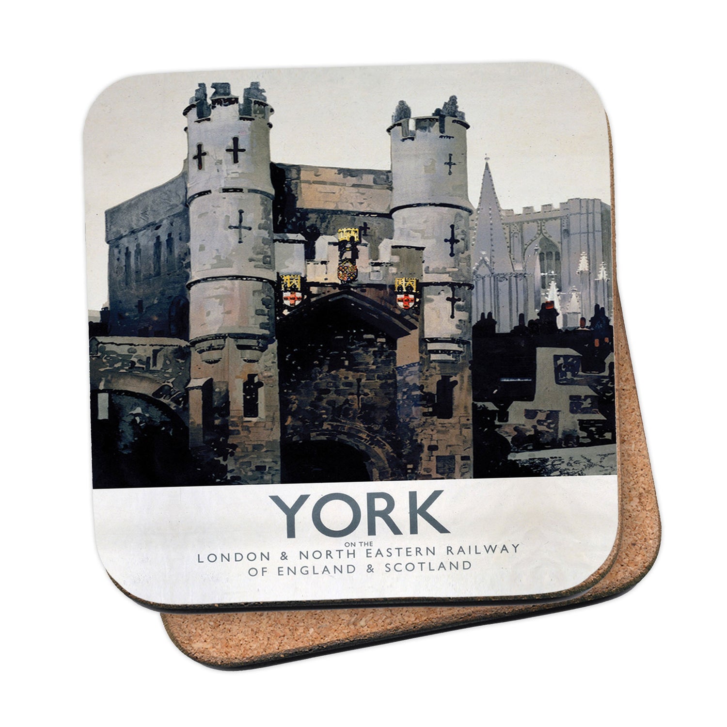 Protect your table surfaces with these durable cork coasters. Beautiful design of York, Monk Bar. Perfect for any Railway Posters enthusiast.