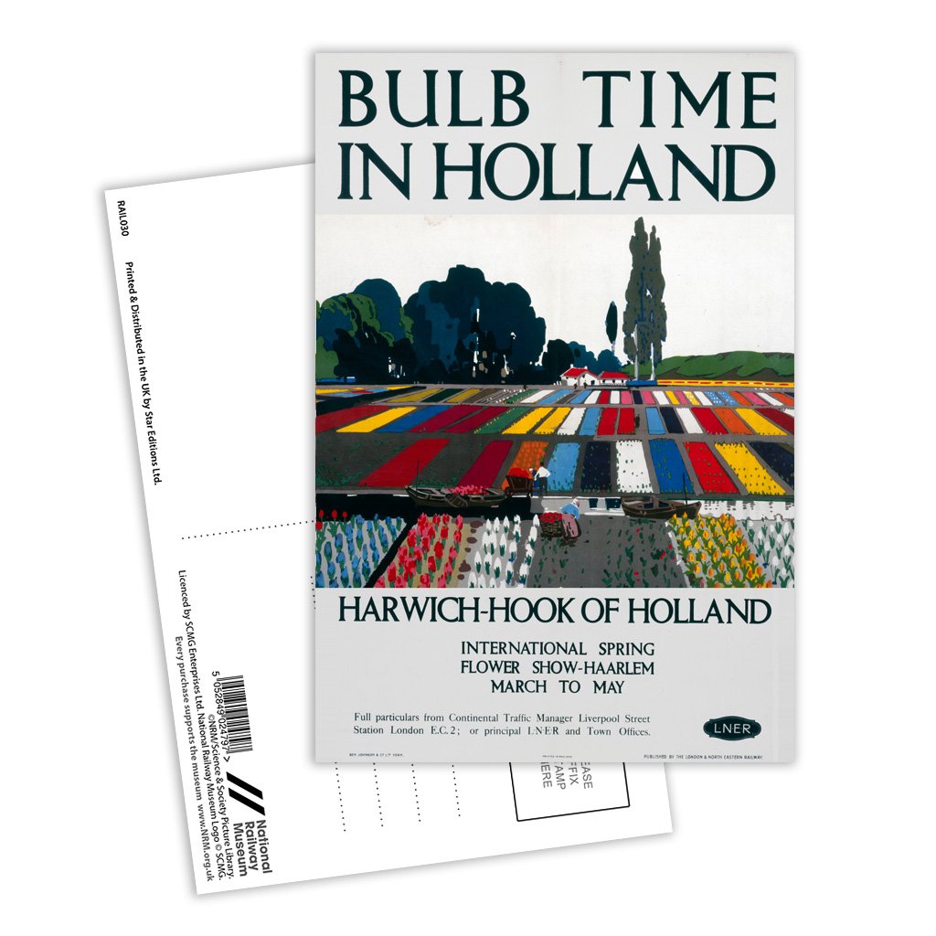 This Vintage Railway Poster postcard pack contains eight postcards. Each printed with the classic poster design of Bulb Time in Holland, Harwich-Hook. All Railway Poster postcards are made from sustainable materials and is FSC accredited.