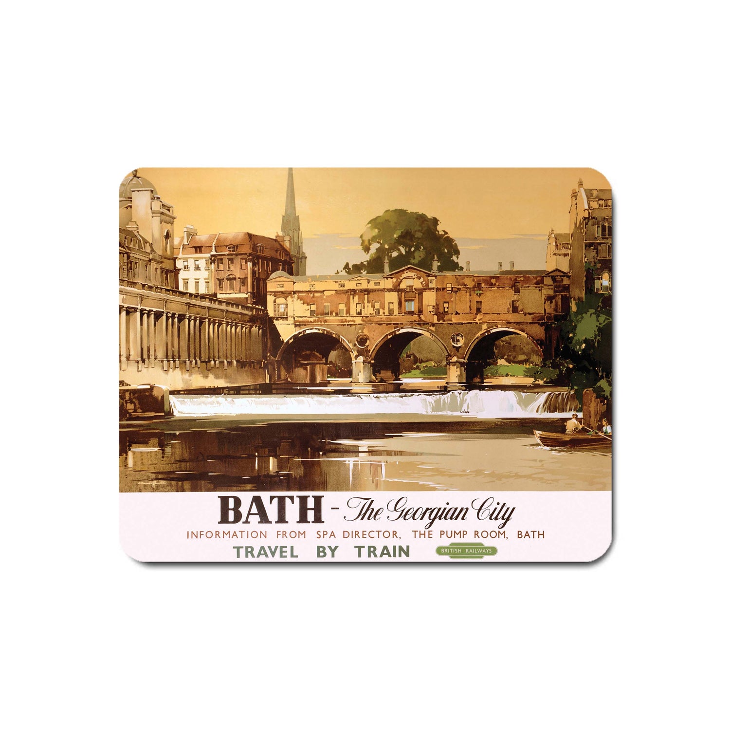 The Bath - The Georgian City Mouse Mat by Railway Posters is perfect for any desk. The surface is suitable for both laser and optical mice and the non-slip rubber base ensures a secure placement on the desk.