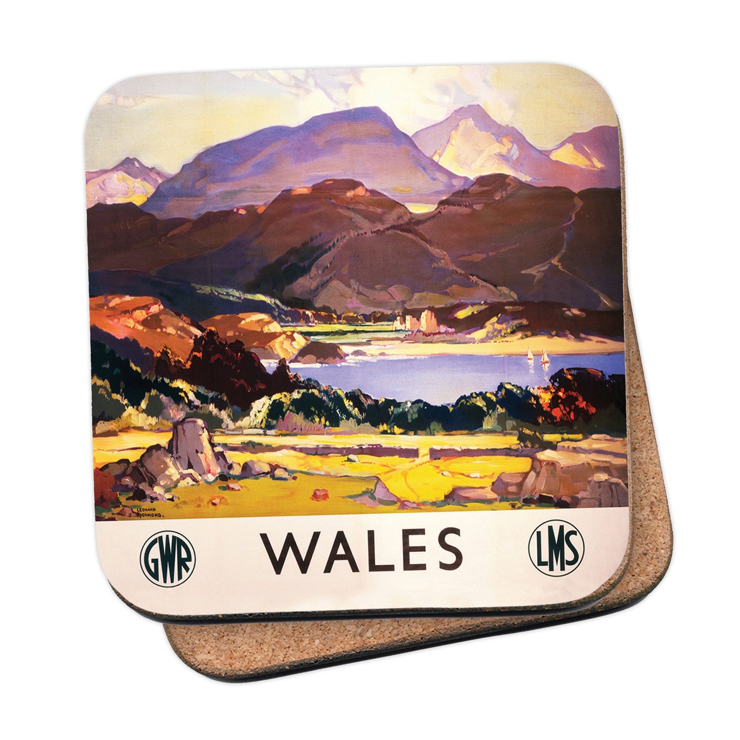 Protect your table surfaces with these durable cork coasters. Beautiful design of Wales. Perfect for any Railway Posters enthusiast.