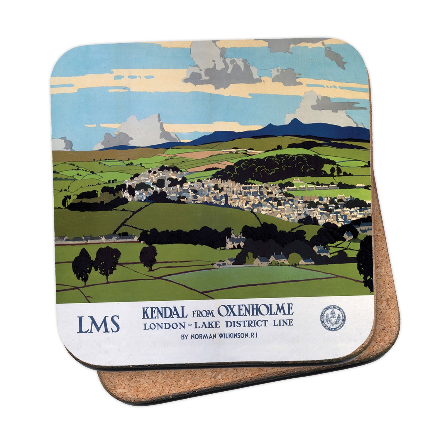 Protect your table surfaces with these durable cork coasters. Beautiful design of Kendal from Oxenholme. Perfect for any Railway Posters enthusiast.